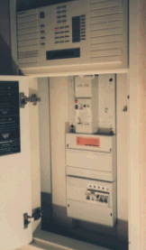 ここで使っているのはシンフォリック(Synforic)のHAシステムで各戸に付けられたマイクロPBXと管理人室に置かれたセントラル・ユニットをペア線で結んでいる。管理人室にはミニテルの端末が置かれ各戸のモニターができるようになっている。