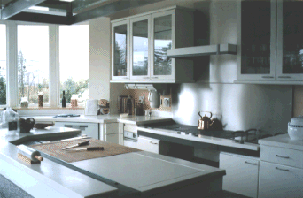 こうしたハイテク機器もダイニングに置かれたシェーカーの伝統的なテーブルや椅子と実にマッチしている。自然や伝統との調和も明日の住まいにとって大切なことである。