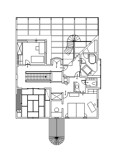サッシュ・ガラス・屋根は住まいの皮膚にあたるものとして、人間の皮膚が外気の状況や体調に応じて反応するように、知能を持った皮膚をめざしている。外部に面したサッシュはすべて空調設備と連動して自動的に開閉するようになっている。
