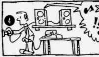 3.ステレオのスピーカーは、音声用の配線を新たにつけ加えることなく、スマートハウスのいずれかのアウトレットに直接差し込むことができる。図では居間にあるステレオ装置から寝室や地下室のスピーカーに音を流している。火事の場合、スピーカーから何かが流れていても、これを中断して警報を流すことができる。