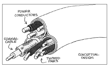 このケーブルの正確な詳細製作仕様については、十分につめられていないが、一般的には電力搬送の電線とテレビの同軸ケーブル、電話やオーディオのペア線、クローズドループに使われる付加的な弱電線が収容されるだろう。
