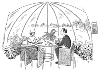 おはようの挨拶の後、この家の二人の男は、コンピュータ栄養士と相談しながら、今日の朝食をオートシェフ(自動調理器)にインプットしに行く。