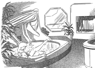 コーチ(今度は、メアリーの要求でコックの声で話している)に指示されたエクササイズをひととおり終えた後、メアリーはホームスパの滝の湯に浸かっている。