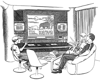 「旅行ガイド・コンピュータにもアクセスして、その結果ケニアでの2週間のサファリが最も良いのではないかということになりました。今夜、あなた方に私の提案の要点を示すためにフィルムのコラージュを準備しています。」