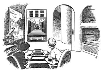 大人達が失われた芸術の再発見について熱心に会話している間、2人の少年はジョンの父親が先週取り付けたオーディオアシスを試している。