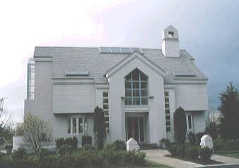 屋根葺材もプラスチックス。日本の準防火地域、防火地域では利用できないが、アメリカでは認められている。きわめて軽量で施工性は抜群である。