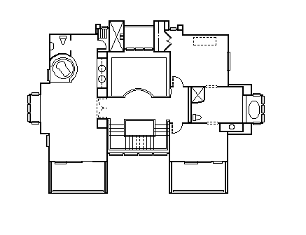 庭を見ながら階段を上がると2階はプライベートゾーン。右側にマスターベッドルーム、マスターバスルーム、左側は2つのベッドルームとバスルームがある。マスターバスルームはシャワールームとトイレを除いてオープンになっている。プラスチックスと木と石といった自然の素材とがうまく組み合わされている。小屋裏を見せた天井は最高6m程もありきわめて開放的なベッドルームになっている。