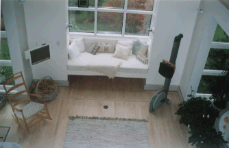 天窓のルーバーは赤外線リモコンで開閉ができる。さらに天窓はポリカーボネートシートで、表面に薄く色づけされたシートが貼ってあり、温度が上昇しすぎたり、カーペットや家具の色あせがないようにしている。