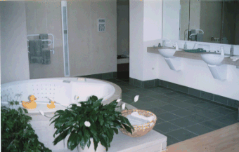 マスターバスルームにはジェットバスおよびスチーム/シャワーユニット、ボディードライヤーが設置されている。これらは日本製でコントローラの表示も日本語になっている。これ以外にもこのコンセプトハウスには多くの日本企業が協力している。