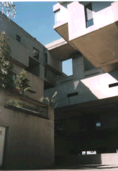新しい形態を追求したサフディが基本としたものは、「家の傍らに戸外スペースを持つこと、日光そして住まいを自覚する能力は生存に不可欠である」ということである。
