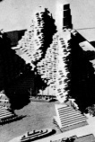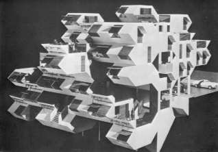 アビタ67は荷重支持ができるプレキャスト・コンクリート製のキュービクル・ユニットをモジュールとして、これを積み上げて12階建てにしたものである。その積み方も均整の取れたものでなく、自然発生的な要素を持っている。