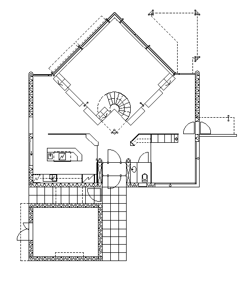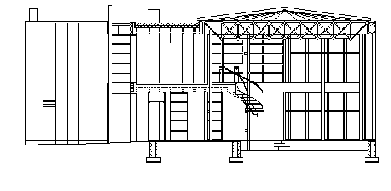 耐力壁の外壁のこない大きなガラス窓面は柱で支えられている。柱はコンポジットプラスチックス管に補強用鉄筋を入れ、コンクリートを充填している。