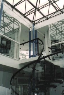 吹抜け部分の屋根に設けた6m×6mの大きな採光天窓は、プラスチックスのスペース・フレームで支えられている。フィンランドは積雪があるので180kg/uの荷重に耐えるよう設計されている。