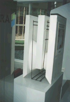 このスペース・フレームはプラスチックス・コンポジット材の成型パイプとポリプロピレン(NEPOL)とガラス繊維のモールディングによるジョイント部材で構成されている。ガラス枠は壁と同様コンポジット・プラスチックス材のフレームでスリムになっている。