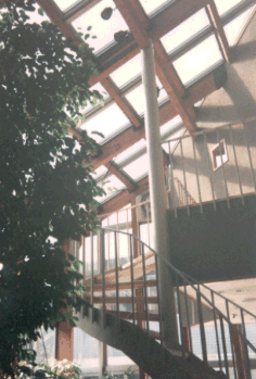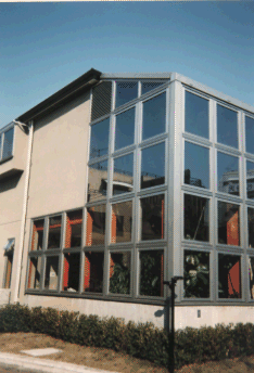 サッシュ・ガラス・屋根は住まいの皮膚にあたるものとして、人間の皮膚が外気の状況や体調に応じて反応するように、知能を持った皮膚をめざしている。外部に面したサッシュはすべて空調設備と連動して自動的に開閉するようになっている。