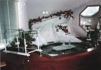 気泡バスやエクササイズ機器、AVシステム、サイクルシャワーなどが設置される。照明はさまざまな環境がエミュレートできる。