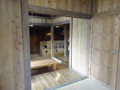 | 三番座は、雨端(あまはじ)から見て一番左側で、台所の隣にある。現在でいうところの居間食堂(リビングダイニング)にあたる部屋で、網元の家ではここで若い衆も一緒に食事をした。 |