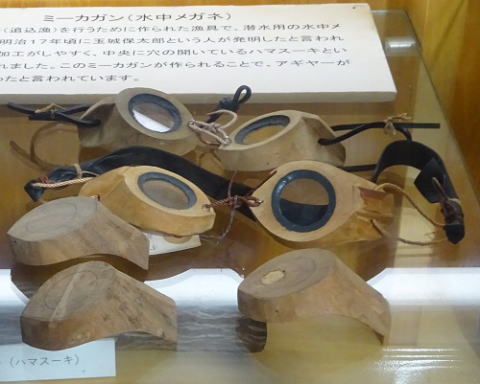 ミーカガンとは、水中メガネの一種で、明治17年(1884年)沖縄の糸満で玉城保太郎(たまぐすくやすたろう)によって発明された、潜水漁を行う漁師に使われていた両眼式のゴーグル。糸満の漁業に影響を与え、漁法の進歩にもつながった発明品である。おそらく世界で初めての発明だと言われている。