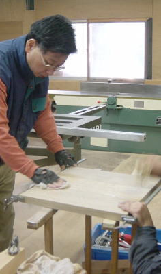 目違いや反りがないことを確かめながら、適正な圧縮圧になるまで端金やクランプを徐々に締め付ける。