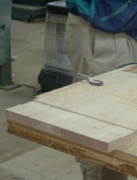 トリマーで鋸で彫った深さに合わせ溝を彫る。